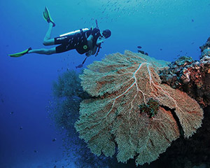 Отличный риф – густонаселённый, с огромным количеством разноцветных рыбок, подводные черепахи плавают. Некоторые виллы расположены прямо над рифом, на крепких металлических сваях, а через метра 2 от лесенки, спускающейся от виллы к рифу, уже глубина моря с богатейшим подводным миром. Чуть ли не под ногами проплывают осьминоги, скаты, черепахи, дельфины, мурены, рифовые акулы, кружатся как в калейдоскопе рыбки. Здесь прекрасные условия для снорклинга.