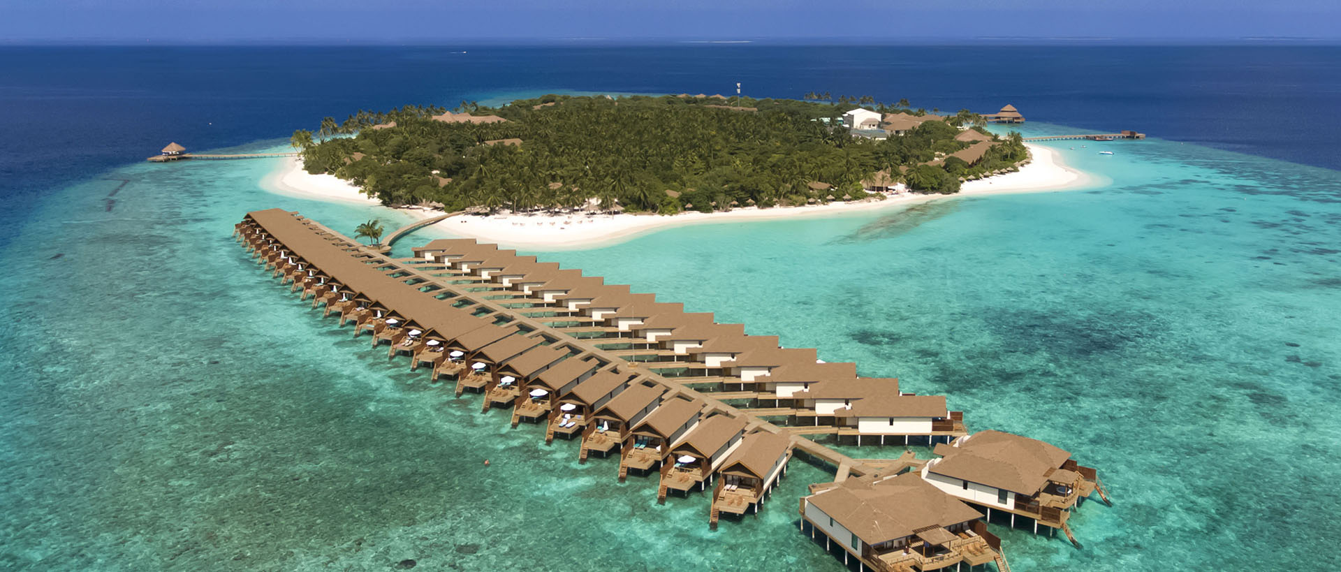 Прибыв на этот роскошный курорт, туристы увидят большой по меркам Мальдив остров, покрытый пышными джунглями, на пляже большие резиденции, на воде стильные виллы, есть бунгало в кронах деревьев, с собственным спортзалом, подходящие для дружеских компаний. Отдых здесь приватный, какую бы виллу вы ни выбрали, никто мешать не будет, и постоянно создаётся впечатление, что весь остров принадлежит только вам, долгожданным гостям.